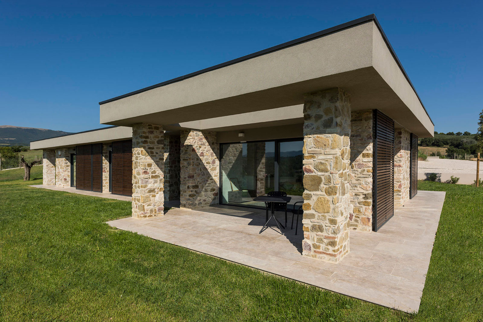 The entire design aims to erase the threshold between indoor and outdoor space, embracing the Umbrian landscape as an essential part of daily life.